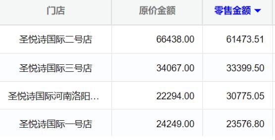 部分門店單天銷售成績